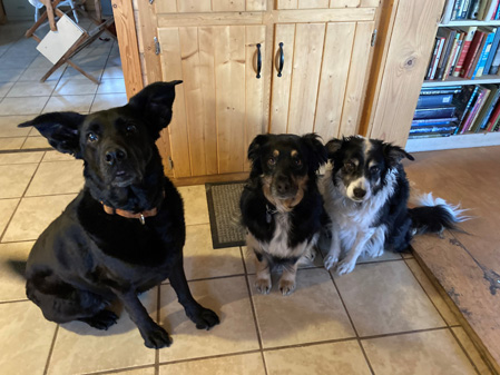 We are caring for a neighbor’s dog. Ozone, as I call her, fits right in. She actually seems to fit in. I mentioned this to Pete and he said, “Well, there’s a lot going on here.” We also speculated that Ryder and Shadow know that she’s a visitor dog.