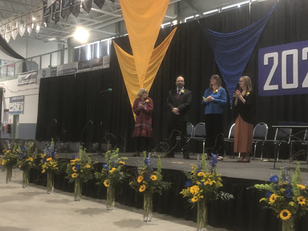 I gave my speech. I had thought it out beforehand; how I was going to deal with the books. I had Pete handed them to me and when I was done, I handed them to Pam. This worked really, really well. Having the two up there also set my mind at ease. What I said to myself was that I was not the reason why I was there – the students were there to complete a rite of passage.
