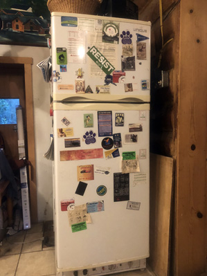 She considered removing all the refrigerator magnets and other refrigerator marginalia and wiping down the outer surfaces. However, she abandoned this idea because she by then had had enough.