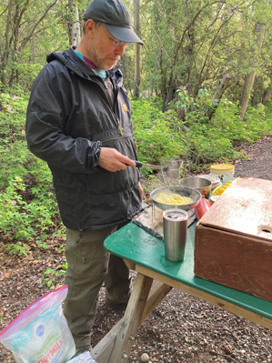 The plan (mine) was to camp at the Little Nelchina Campground – it’s never full, seems rather abandoned and, yep, the only other full campsite contained this very, very large yellow tank-like machine. It had to be a military vehicle.