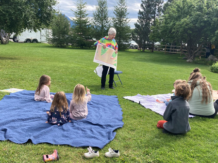 The book project is going very well. Today, Pam, Bea, and I convened on the lawn of the Palmer Museum and passed out books to appreciative readers. We also conducted a story hour – about 20 little kids did the hokey pokey, the itsy bitsy spider, and then listened to Pam read some large picture books.
