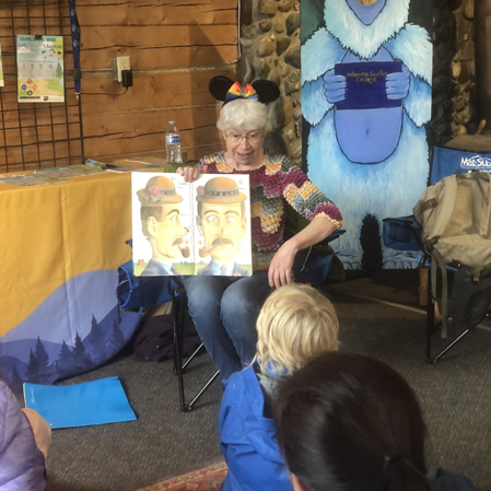 No story time today at the Kid’s Kuboard barn. We did do story time at the Mat-Su College cabin. Pam, wearing Mickey Mouse ears, read three books, one of which was our standby, the Wonky Donkey. Me, I read a book about a little girl who wakes up one morning and discovers that she has antlers. I had one audience member for this.