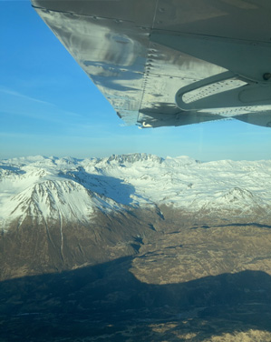 The hour-long flight was smooth – I could see the mountains extending far off into the distance – they looked like stiff frosting on cake.