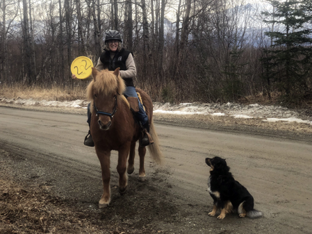 I next saddled her. Then Pete appeared with his camera, and he, Shadow, and I made our way down to the road where we always take photos.
