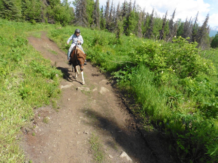 I decided to ride her in the center of the road where she’s not distracted by the greenery. The other day I did this and also took her out on the trail. Didn’t work. But today, our going for a road ride went very well. We came to the turn towards home, after doing the loop, and she refused to move. So I got off of her and we walked a ways down the road.