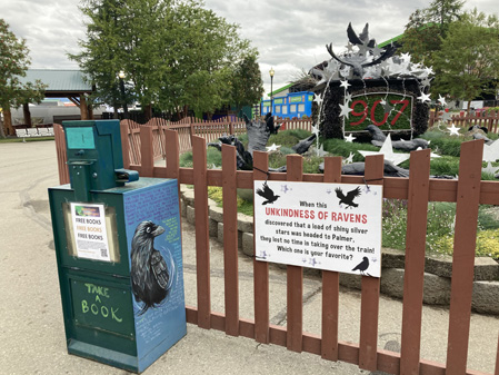Pete and I then went to the fairgrounds, which had hardly any people walking around or even doing work. And there was no traffic. We stocked the newspaper boxes. And we moved the box that was located in front of Raven Hall to in front of Becky’s topiary exhibit. We also took out the history books, and in their place we put the Alaska books. It felt good to do this.