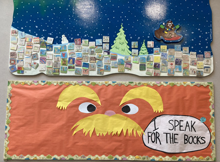 We did what we did this year, building on what we did last year. We had the same set-up. I also saved Halloween books all year. I asked Hally who is the administrative genius at Kid’s Kupboard to partner with us. She set up shop, with a shelter, right outside the side door of the former banquet room of the historic Eagle Hotel. This, plus having two volunteers (Alex and Calli) wearing sandwich boards at the corner, got the line of human traffic moving in our direction. I also made a space in which our partners, The Alaska Literacy Project, passed out information.
