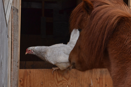 Tyra says hi to the chicken