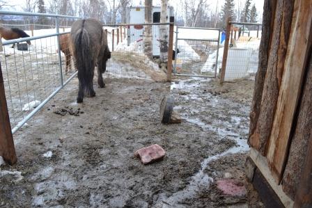 Key to all this is being obsessive about pen cleaning. I kept up with this aspect of horse and property ownership this winter. So right now, the footing in the two pens and larger enclosure is slightly slushy. However, the horses are not up to their ankles in manure and other soft stuff.