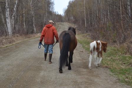 Upon our return we reversed the earlier order, putting all the horses in their respective places. After, Pete and took Hrimmi and Signy for a quick walk down road. Hrimmi raced around, checking this and that out. Signy walked slowly behind Pete, while I took innumerable photos.