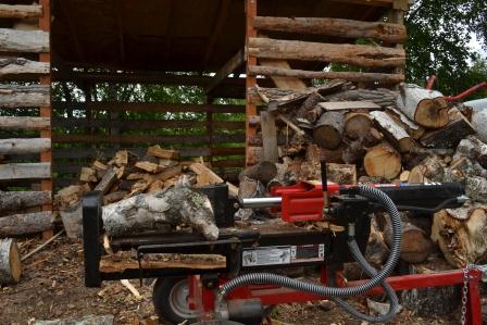 So I put on my gloves and ear protector, and went at it. Pete returned just as the splitter ran out of gas. |