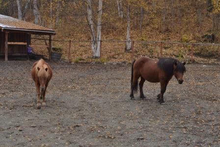 I returned home and first took Raudi and Signy out, and then Tinni and Siggi out. I was, late in the afternoon, coming around the bend when I saw two horses, the gray Arab and the black draft horse – trotting towards me. Oh oh. I got off Tinni and let them all introduce themselves. I needn’t have worried about there being an altercation – they all acted like they knew one another. Siggi of course did his best Jim Carey impersonation, and Tinni his Humphrey Bogart impersonation. The others, knowing that my horses are imposters, ran into the neighbor yard and began making more divots.