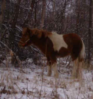 Tinni was the first one out on the trail today. He’s doing a great deal better, now that he has his ice shoes on. He tolted nicely and was upbeat and chipper the entire time he was out. Lesson # 1 learned: It sometimes takes a few days for tender footed horses to feel better once they’ve been shod. I also rode Tinni bareback today—I never once gave this any thought at all. Lesson # 2 learned: Becoming a good rider takes considerable time. You just have to be patient with yourself.