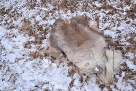 So, today’s photo. Not very pretty. I came across the skin yesterday, at the near conclusion of our horseback ride. It was at the trailhead/Murphy Road intersection. In September, during hunting season, a buncha guys camped out at the turnoff – for an entire month. (Some arrived early, so that they could reserve themselves a spot. Good thinking, eh?) At the conclusion of the season they left area residents (and we do live in a residential area) a memento, which is a moose skin. They probably thought that there was no sense in taking it with them, because they couldn’t do anything with it. So there it is. Come spring, it will become soft and stinky. Our dogs will gnaw on it and get in a good shoulder roll or two.