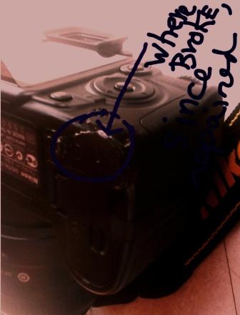We then set the camera aside, and let the glue and pieces set up. It’s now easy to discern where the break occurred. I will touch it up with an indelible magic marker. The patch job ought to hold. If it does not, Pete and I will act upon other options.